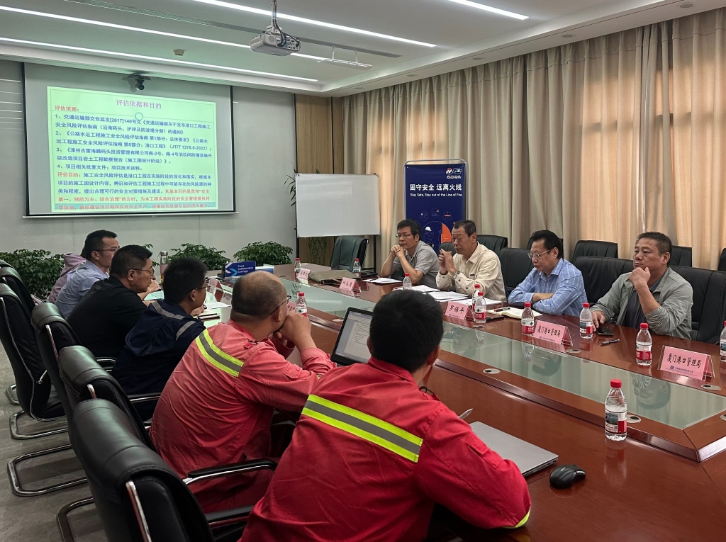 为进一步强化项目安全管理体系,筑牢施工安全防线,11月13日下午,海腾码头于中控楼会议室组织召开南-2号、南-4号泊位间防撞设施升级改造项目施工安全专项风险评估报告评审会。厦门港水运工程质量安全中心、项目设计单位、施工单位、报告编制单位及海腾码头等多方代表,会同特邀专家共计十余人参加本次会议。